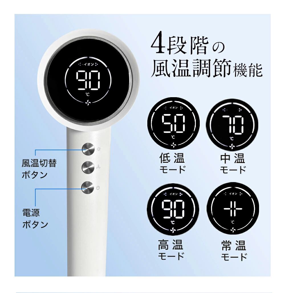 ●ドライヤーには、常温、低温、中温、高温などの4つの風温調節モードと、