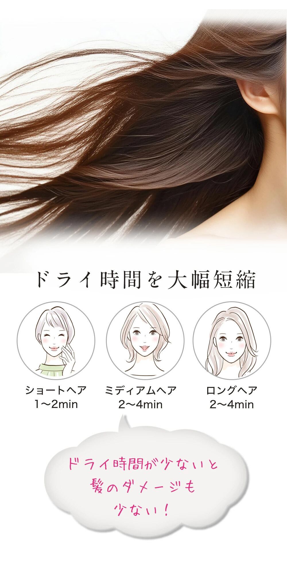 ショートヘアーー3分速乾/ミディアムヘアスーー5分速乾/ロングヘアーー7分速乾