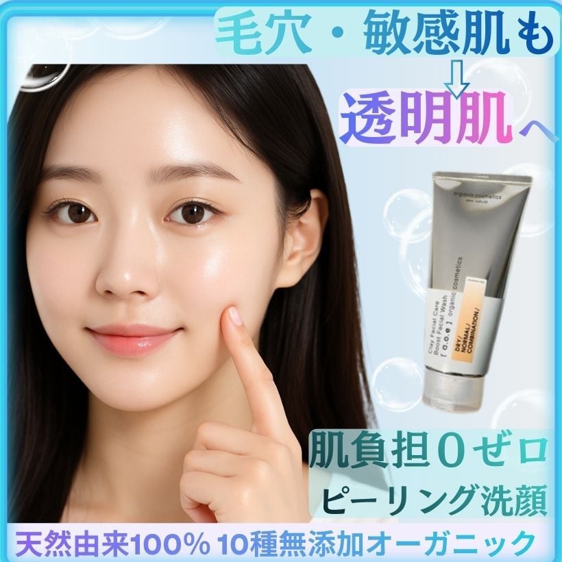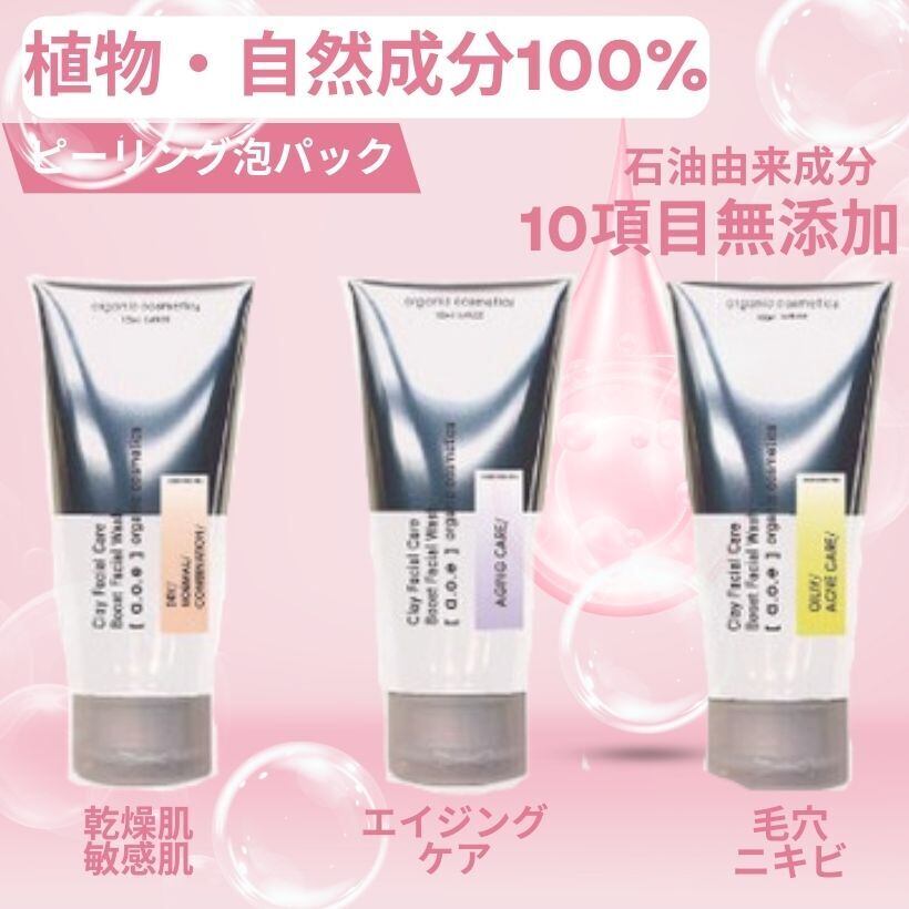日本製 無添加で敏感肌も毛穴肌もOK ピーリング洗顔 泡パック クレイ 泡洗顔で透明感の肌へ 100g 肌に優しい洗顔料 a.o.e organic cosmetics