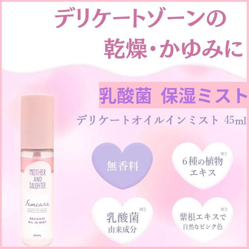 デリケートゾーン 保湿ミスト かゆみ,乾燥,フェムケア ミスト 敏感肌もOKな低刺激 触れずに保湿 デリケート オイルインミスト 日本製 45ml M&D ネコポス送料無料